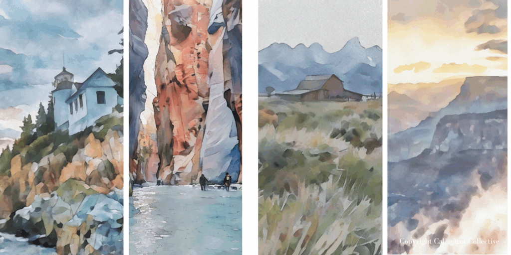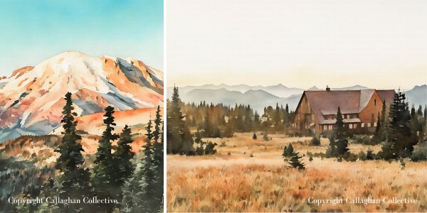 Throughout this post, you’ll also see watercolor paintings inspired by the places we visited. Each one started as one of my travel photographs that I transformed into watercolor artwork. If you’d like to bring a little piece of the PNW into your home, you can shop the prints on my Etsy shop, Callaghan Collective.