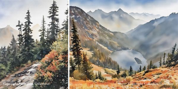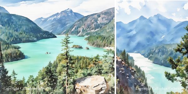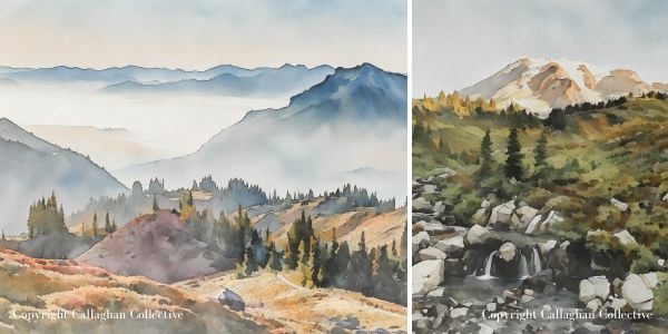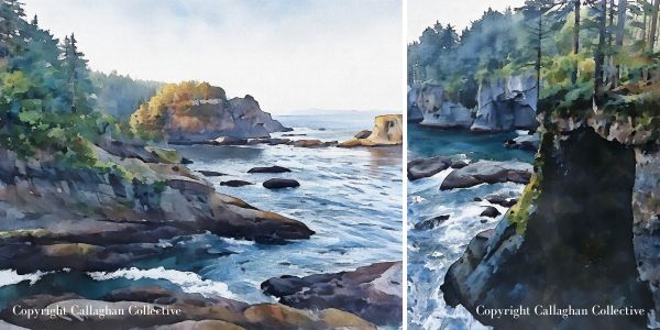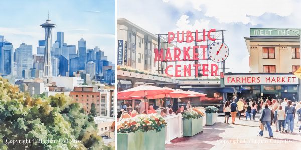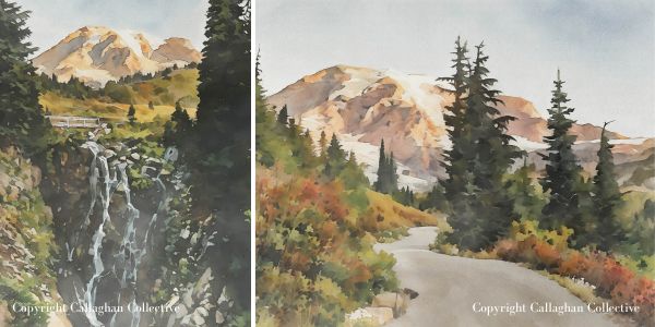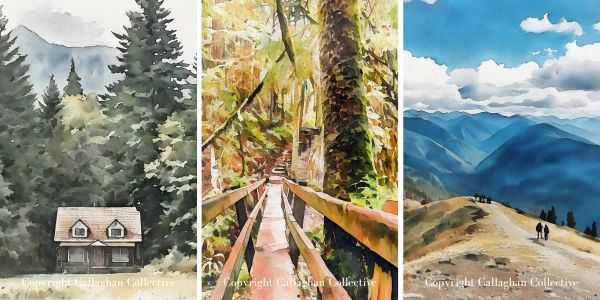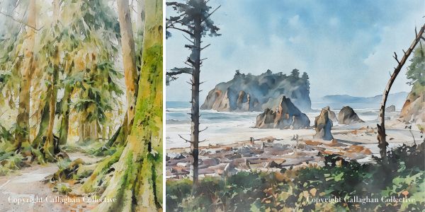 Throughout this post, you’ll also see watercolor paintings inspired by the places we visited. Each one started as one of my travel photographs that I transformed into watercolor artwork. If you’d like to bring a little piece of the PNW into your home, you can shop the prints on my Etsy shop, Callaghan Collective.
